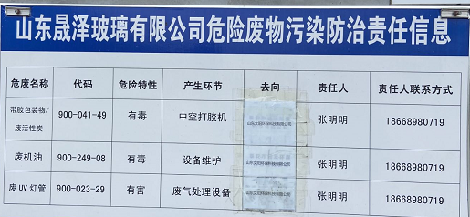 山東晟澤玻璃危廢污染防治責(zé)任信息公示
